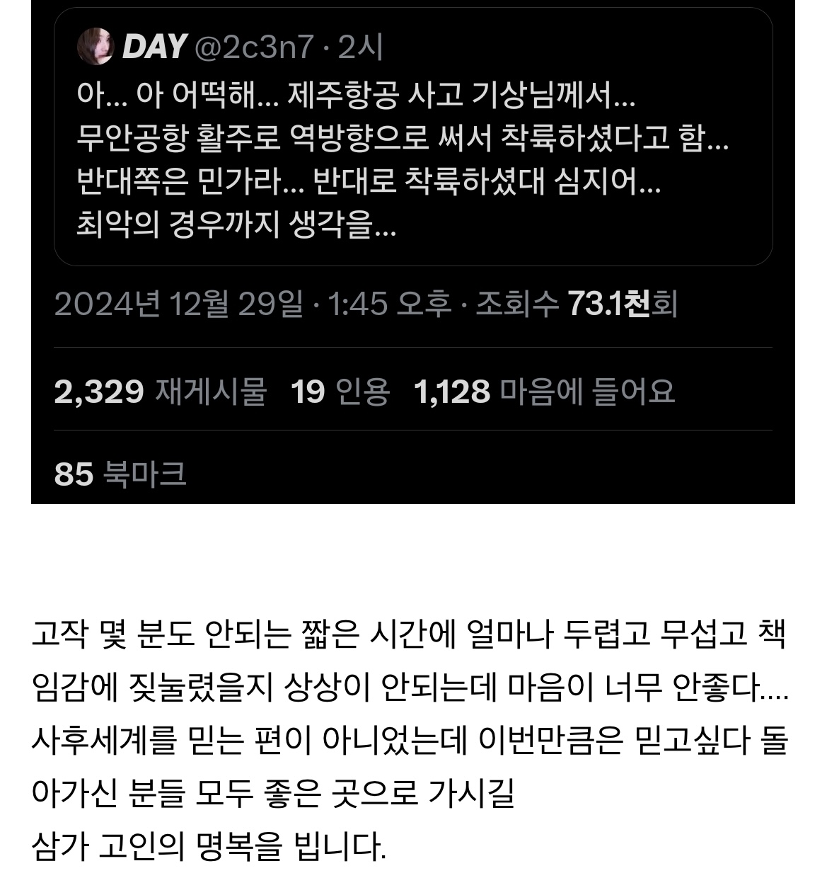 제주항공 사고 기장님 마지막까지 최선을 다하신 흔적들